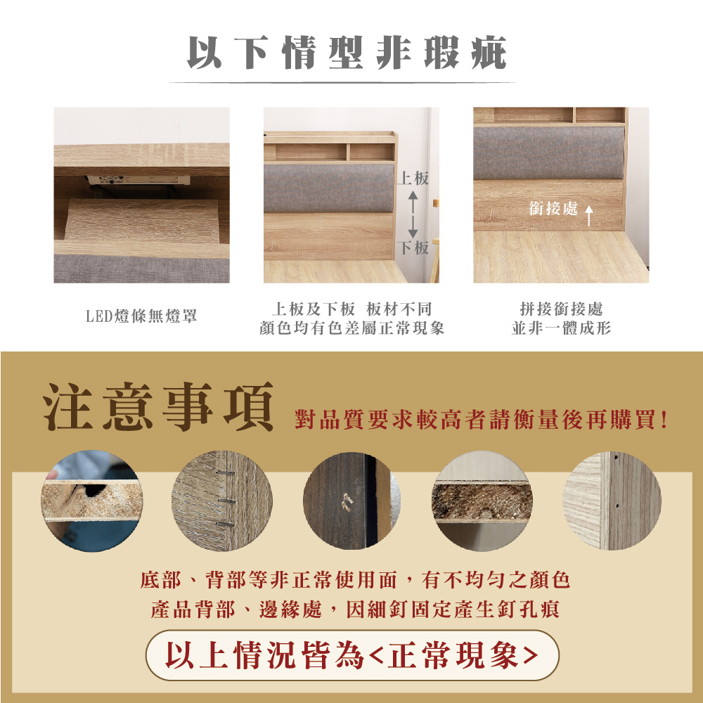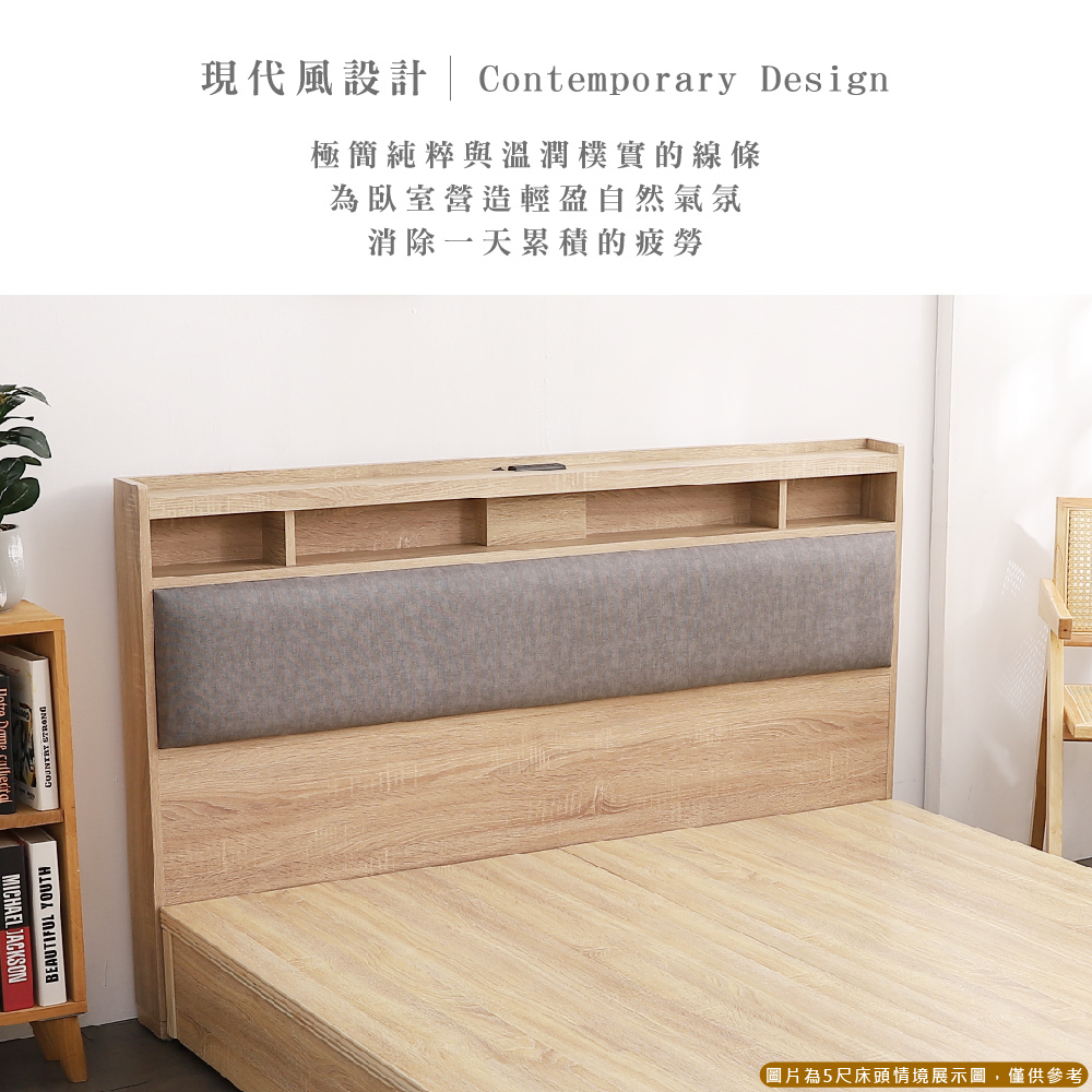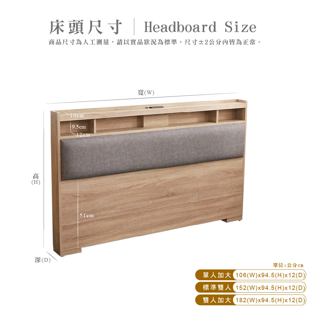 日比野 LED燈光床頭-單大3.5尺/雙人5尺/雙大6尺