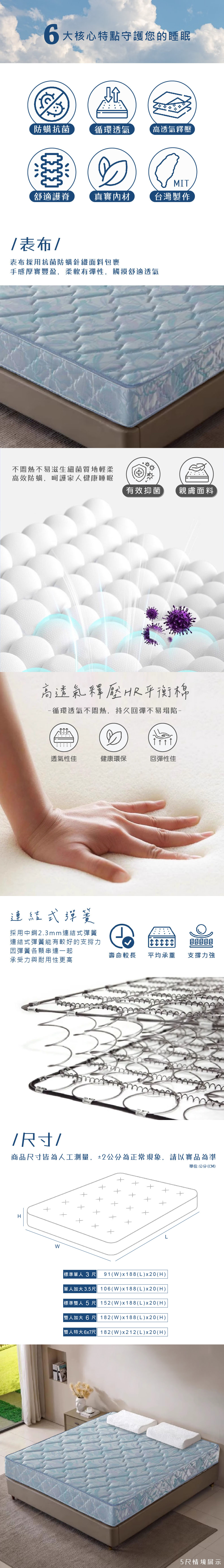 D06 抗菌連結式彈簧床墊 單人3尺/單大3.5尺/雙人5尺/雙大6尺