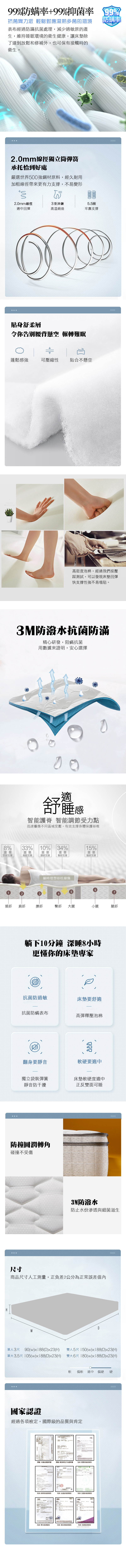 K01吸濕排汗3M高彈力三線獨立筒床墊-單人3尺/單大3.5尺/雙人5尺/雙大6尺