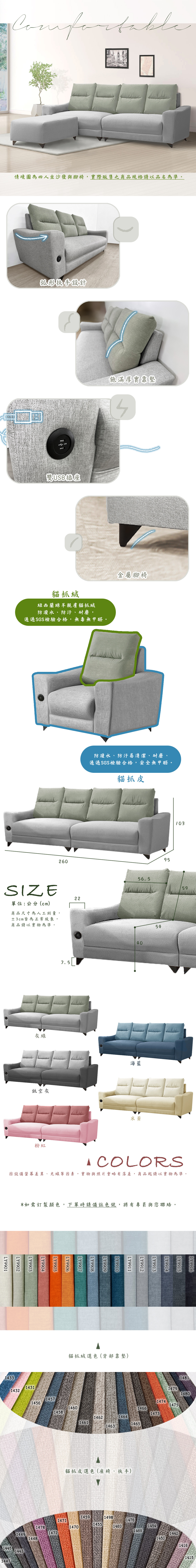 傑森 耐抓貓抓布+皮插座沙發4人坐