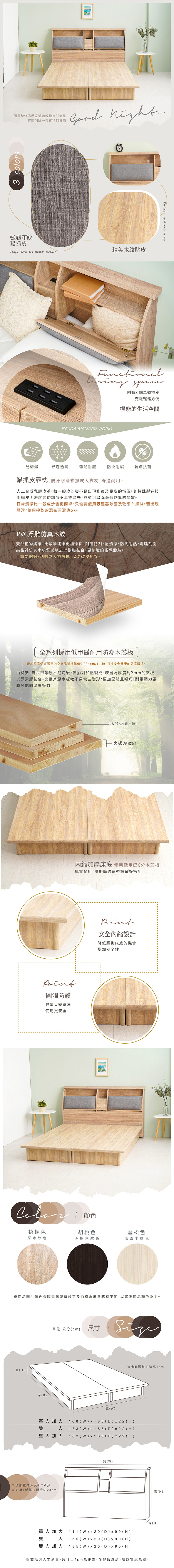 蜜絲 20cm收納插座貓抓皮靠枕房間二件組-雙人5尺 床頭+內縮加厚床底