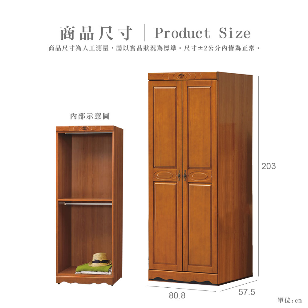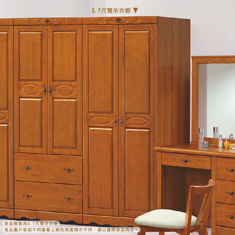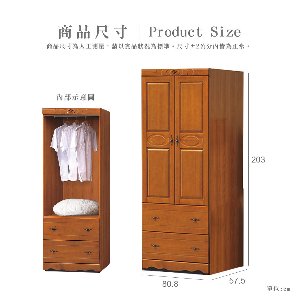 伊朗 樟木色2.7尺雙吊衣櫥/2.7尺二抽衣櫥
