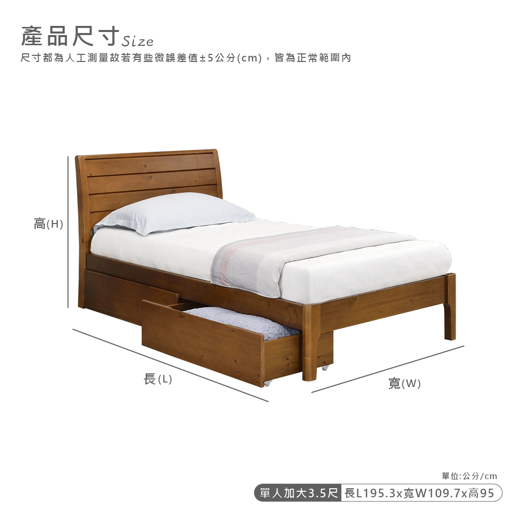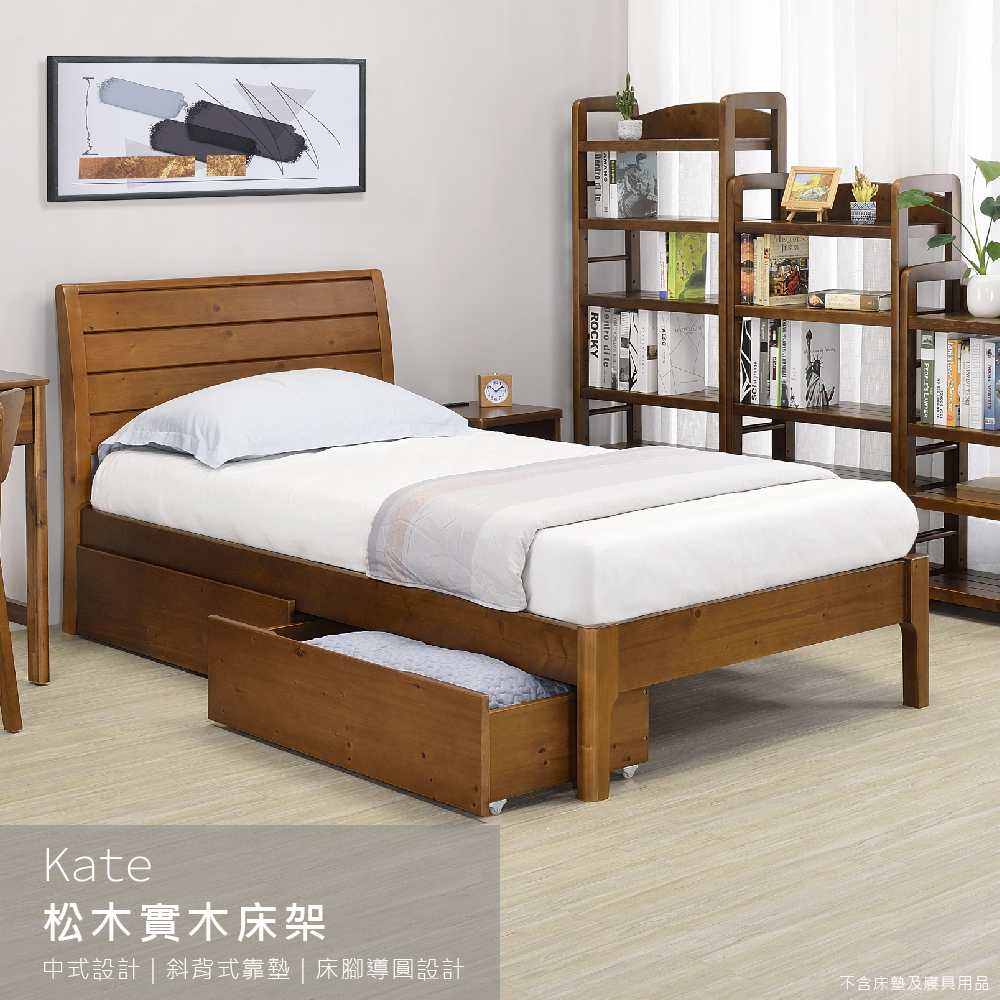 凱特 斜背實木日式床檯(含二個抽屜)-單人加大3.5尺