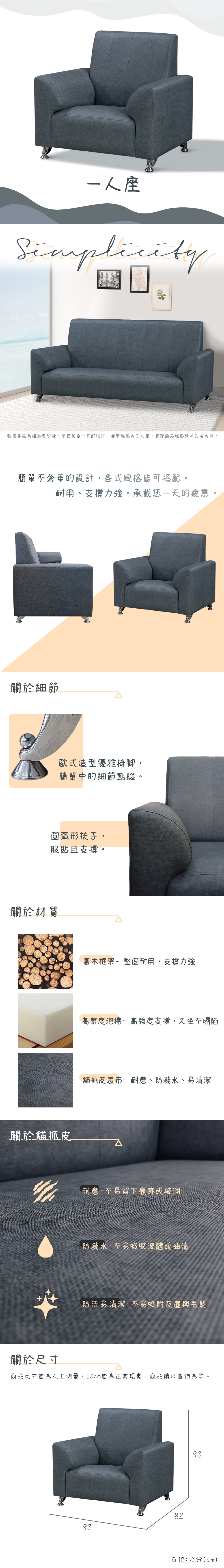 力紅 簡約貓抓皮1人座沙發