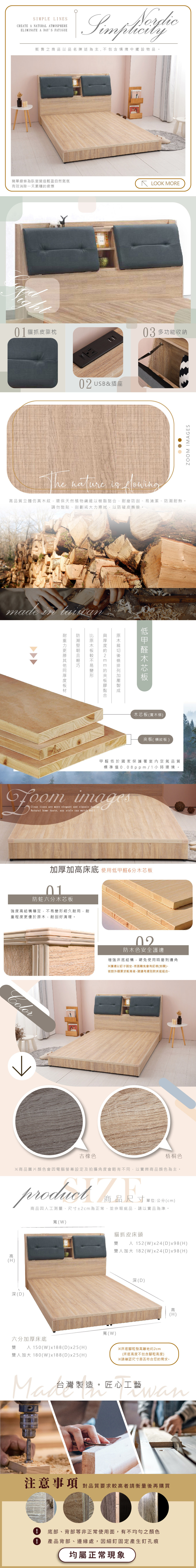 卡爾特 USB插座貓抓皮房間二件組 床頭+六分床底-雙大6尺