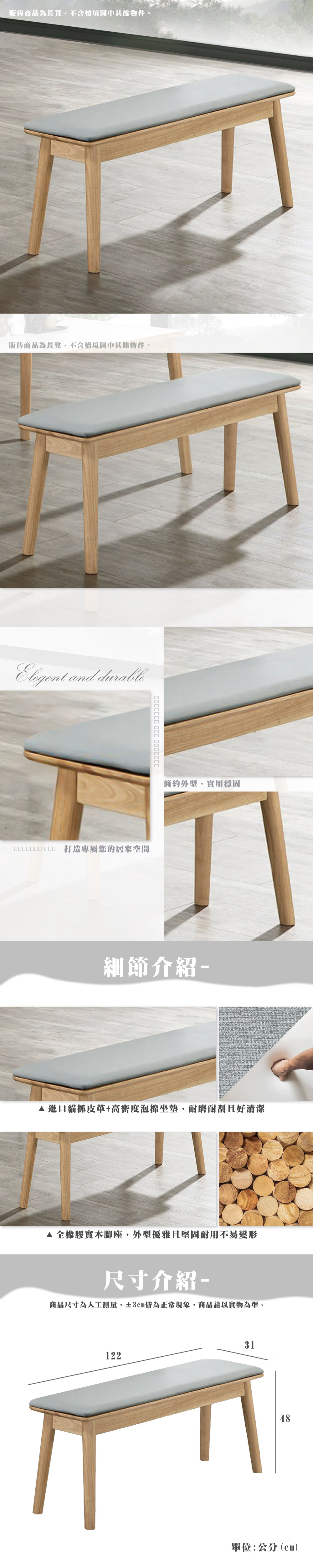 宮良 實木貓抓皮長凳