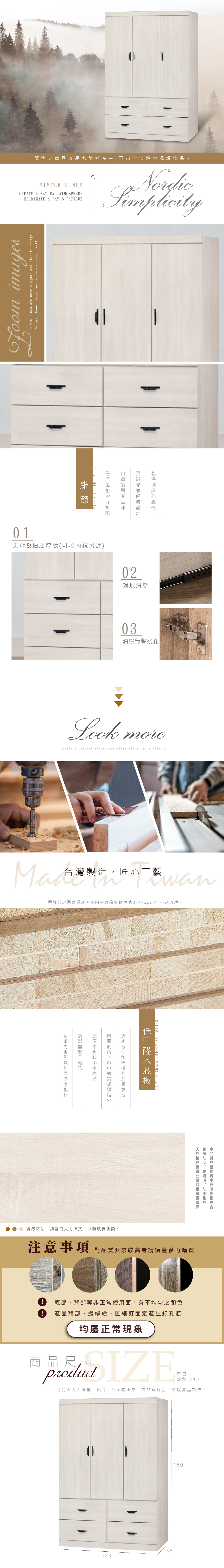 山中 原切白4x6尺拉門六抽收納衣櫃
