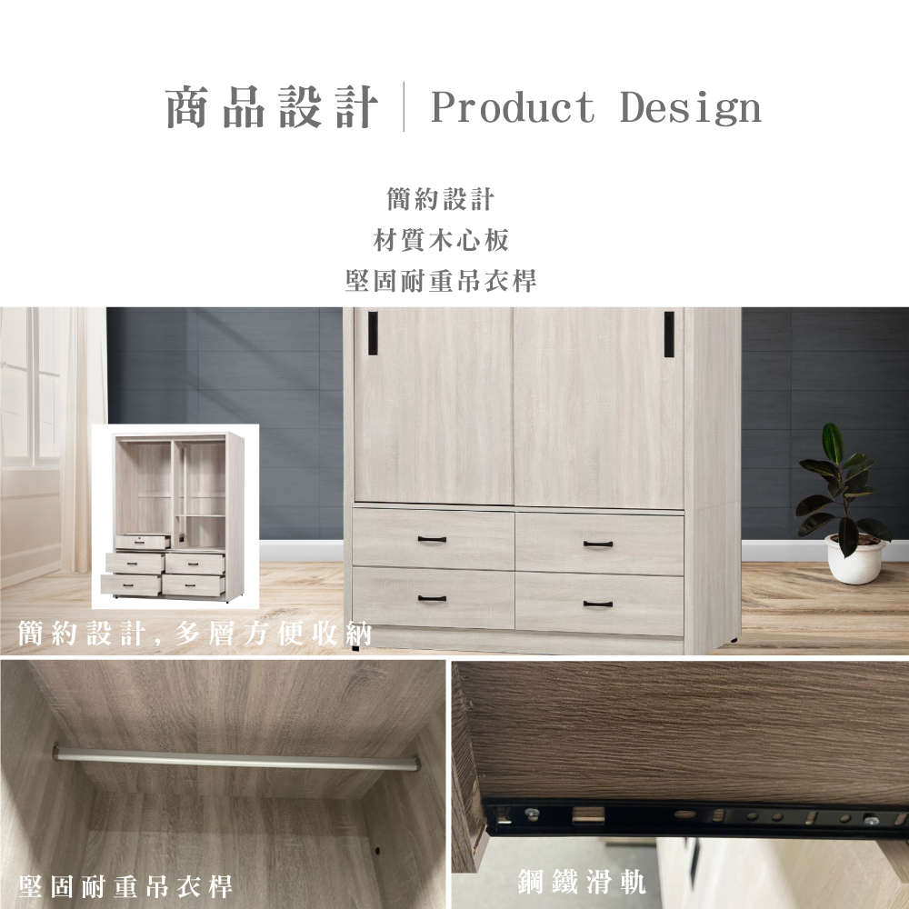 布拉格 日式簡約5尺4抽收納衣櫃/衣櫥