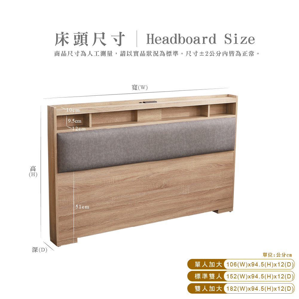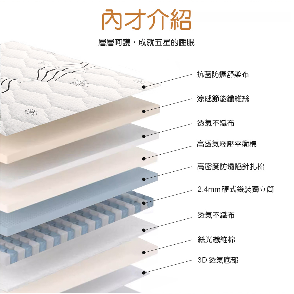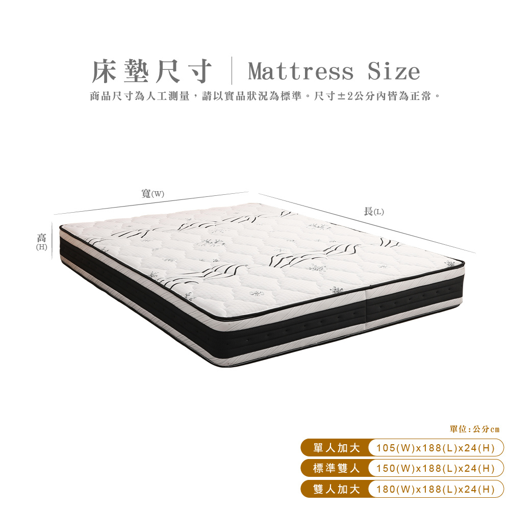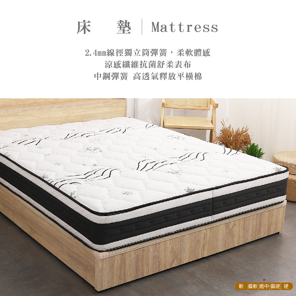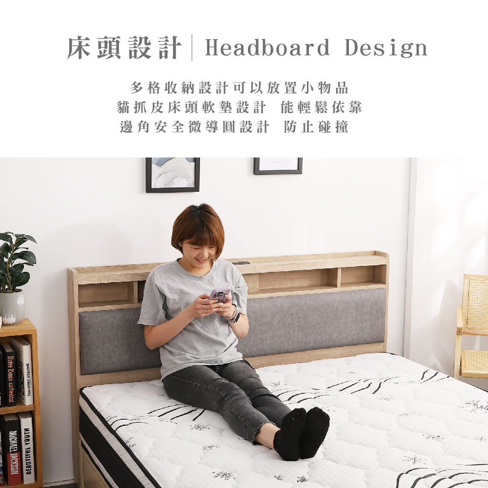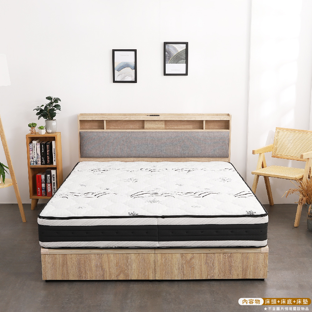 日比野 LED燈光臥室三件組-單大3.5尺/雙人5尺/雙大6尺 梅爾獨立筒床墊+床頭+六分底