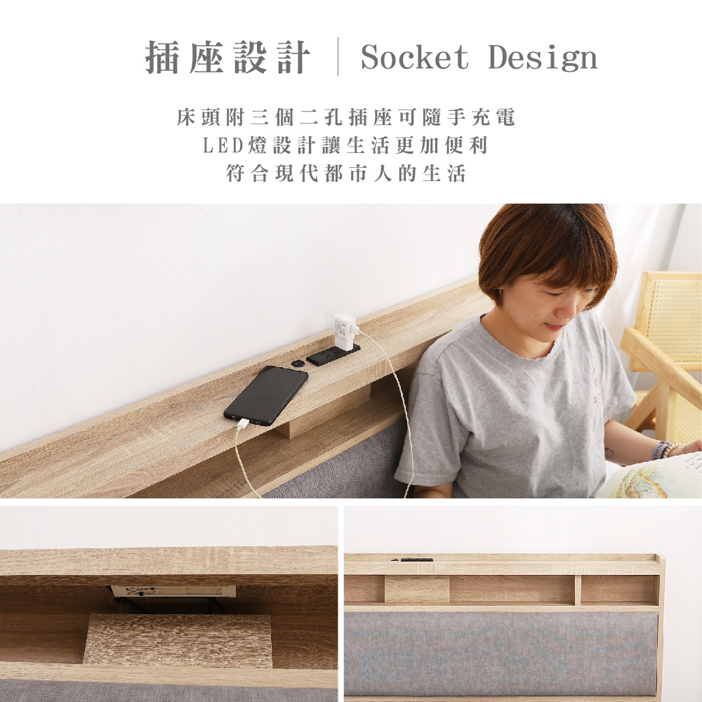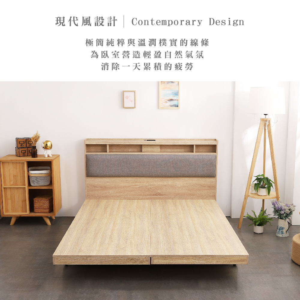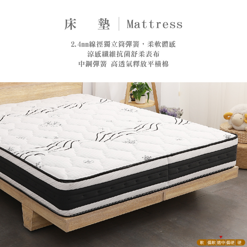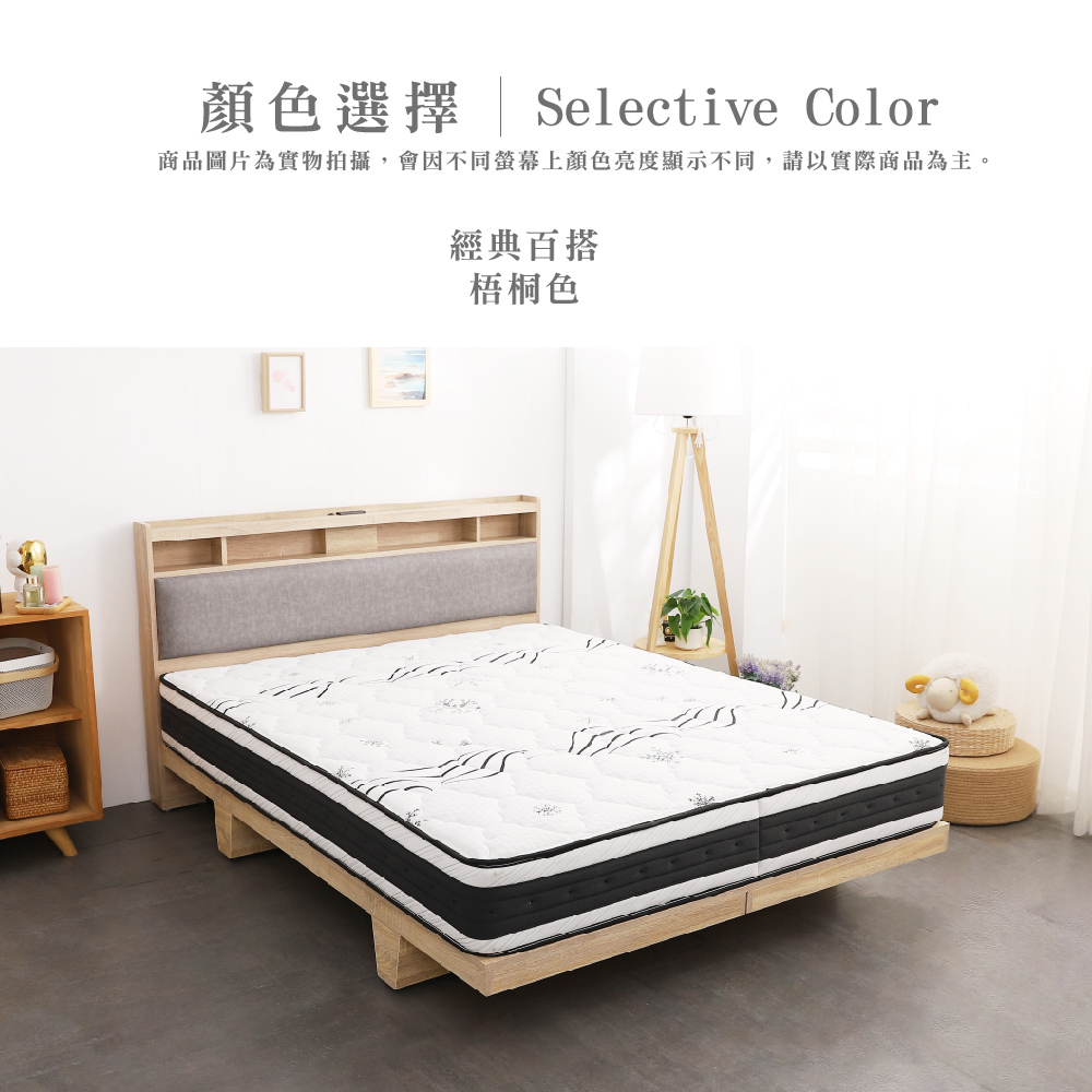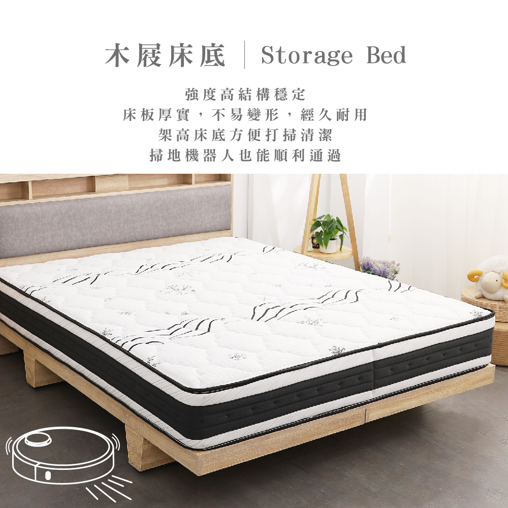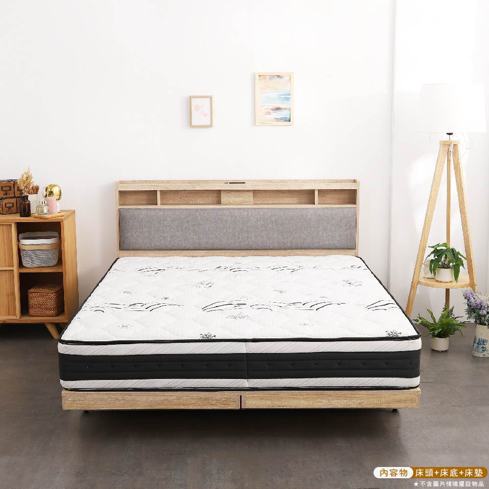 日比野 LED燈光臥室三件組-單大3.5尺/雙人5尺/雙大6尺 梅爾獨立筒床墊+床頭+木屐底