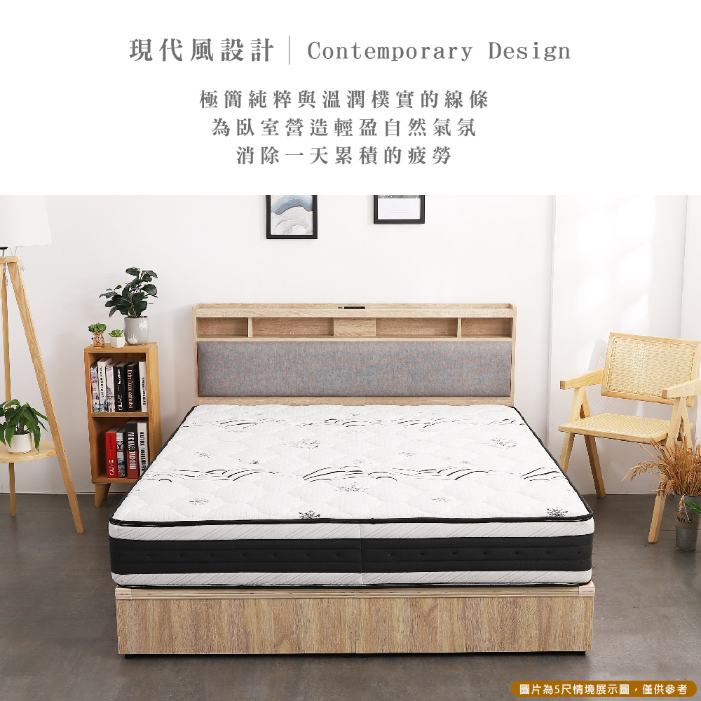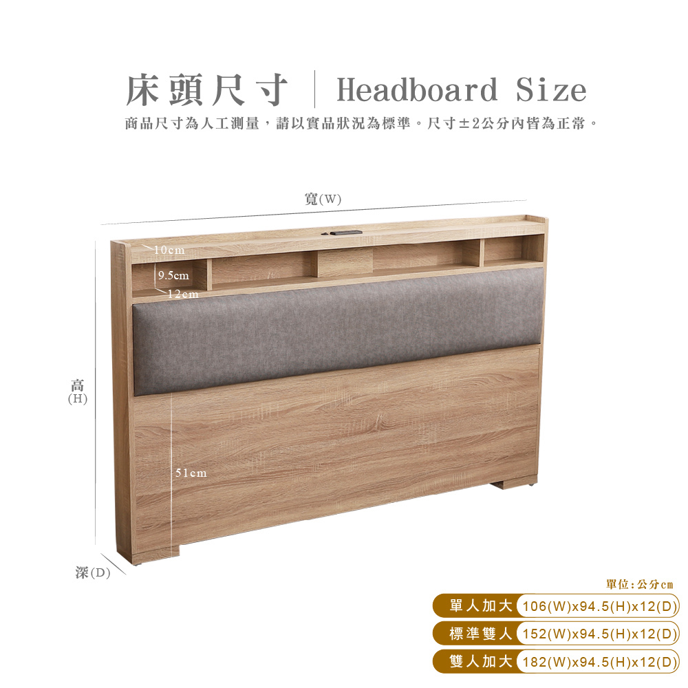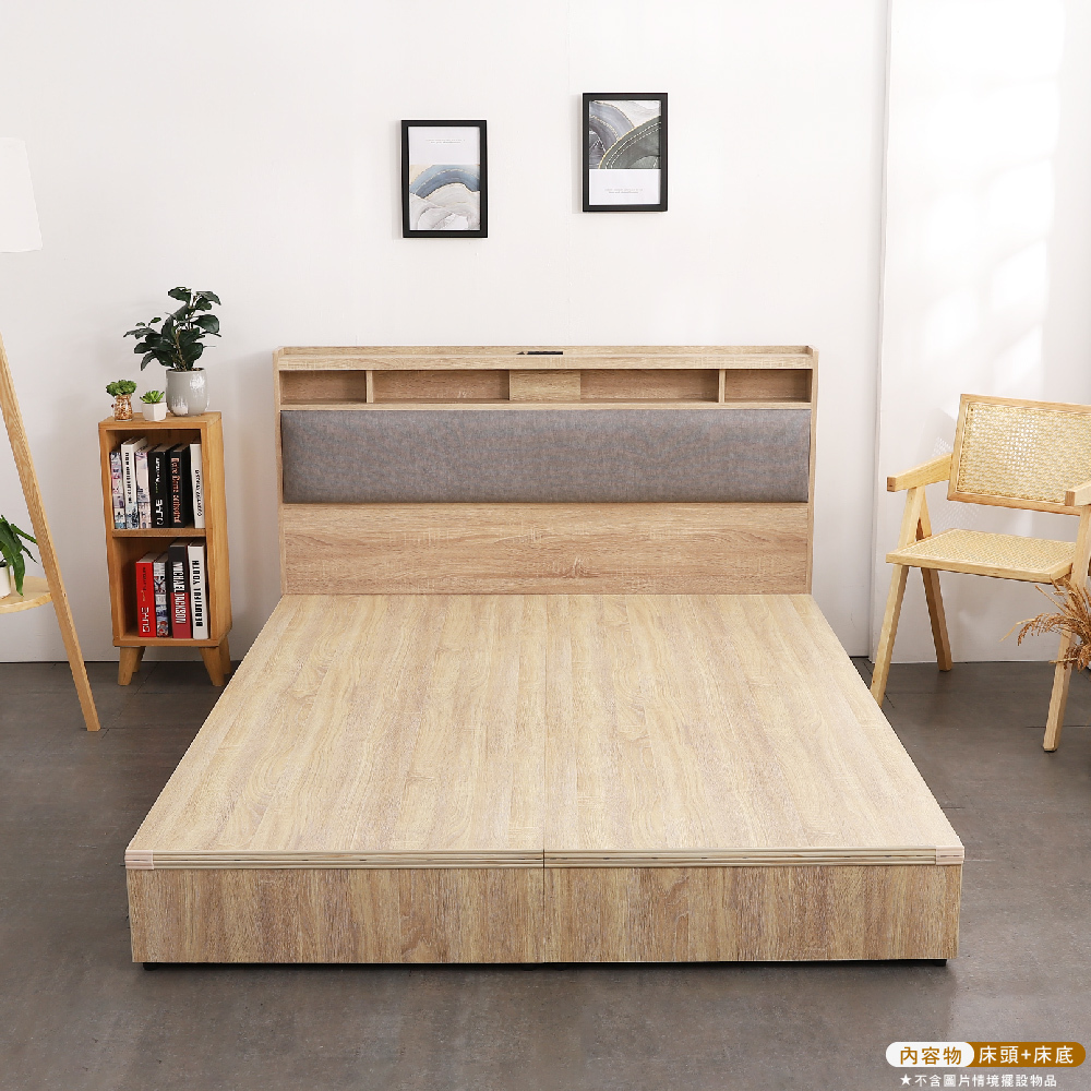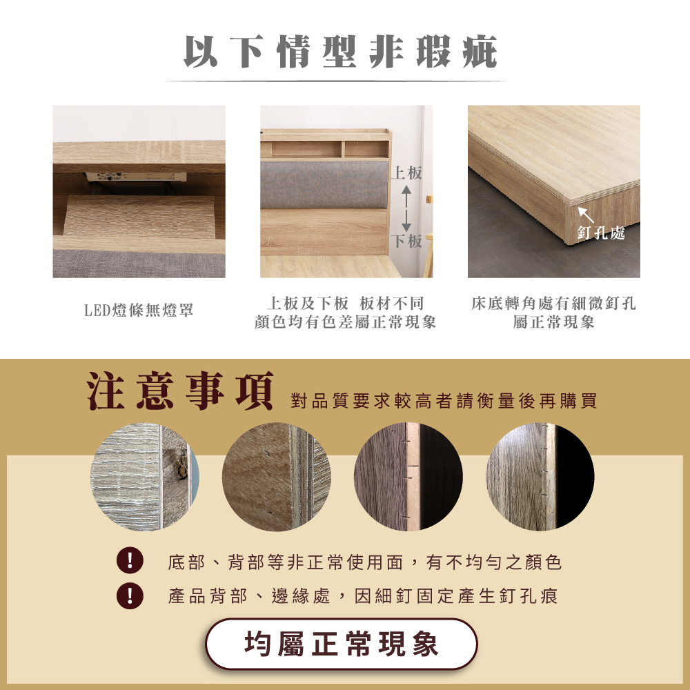 日比野 LED燈光臥室二件組-單大3.5尺/雙人5尺/雙大6尺 床頭+六分底