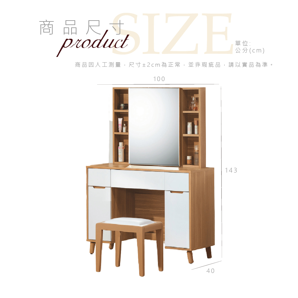 星野 3.3尺北歐烤白雙色鏡台/化妝台(含椅)