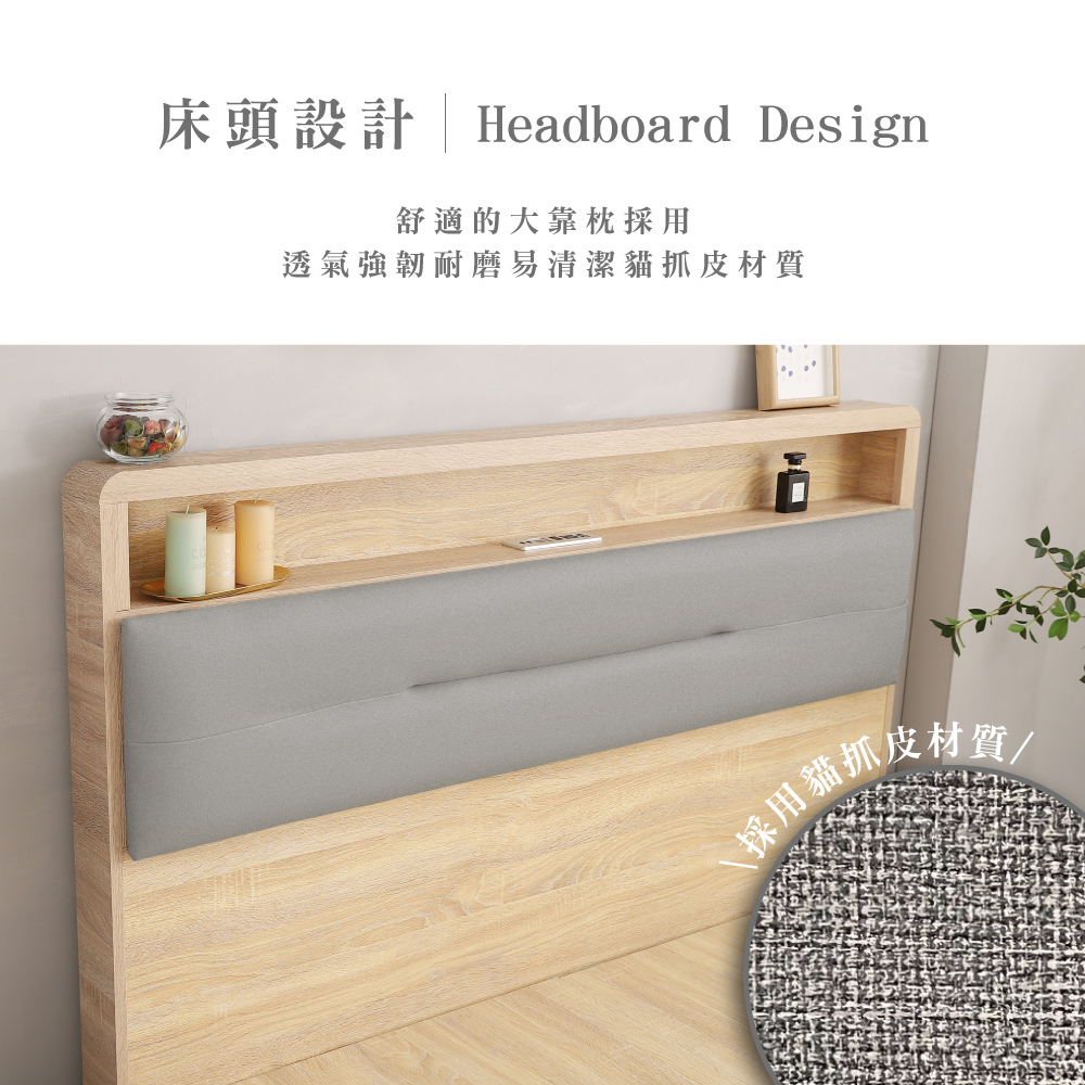 查爾 舒適靠枕房間二件組-單大3.5尺/雙人5尺 床頭+掀床