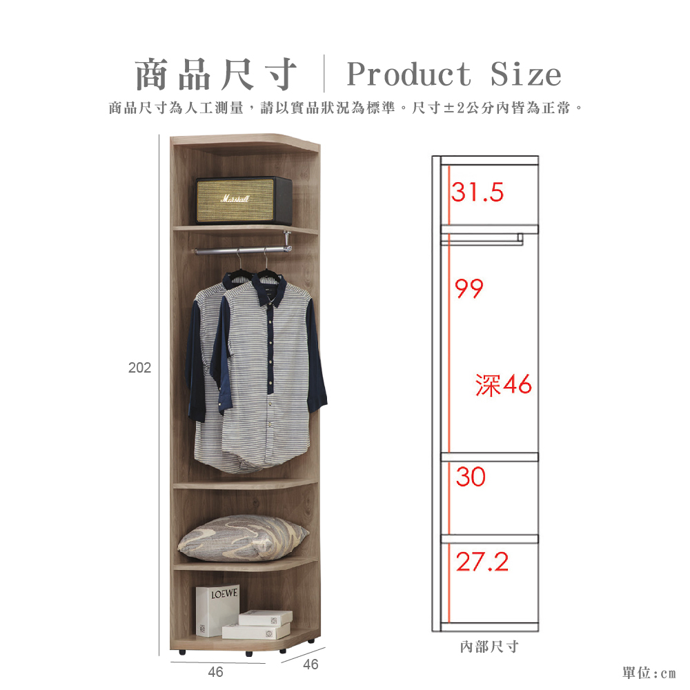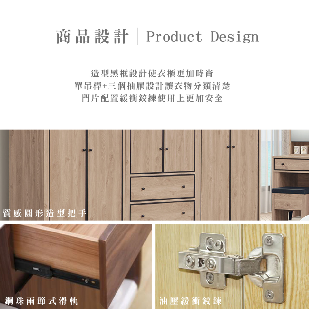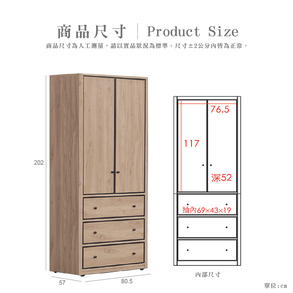 維特 2.7尺單吊三抽衣櫃/雙吊衣櫃/1.5尺邊櫃