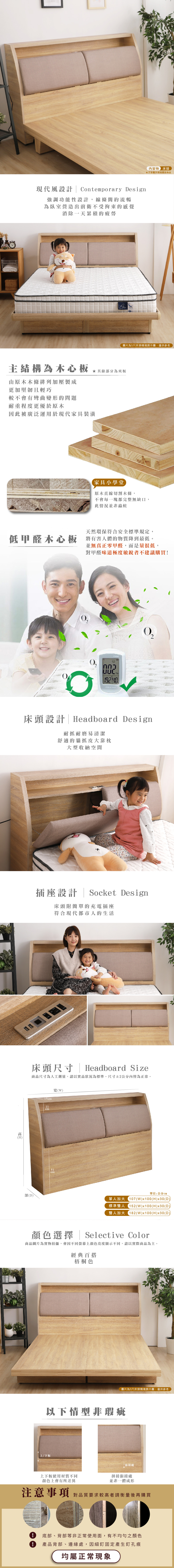 羅伯 貓抓皮收納插座床頭-單大3.5尺/雙人5尺/雙大6尺