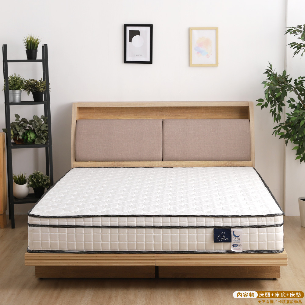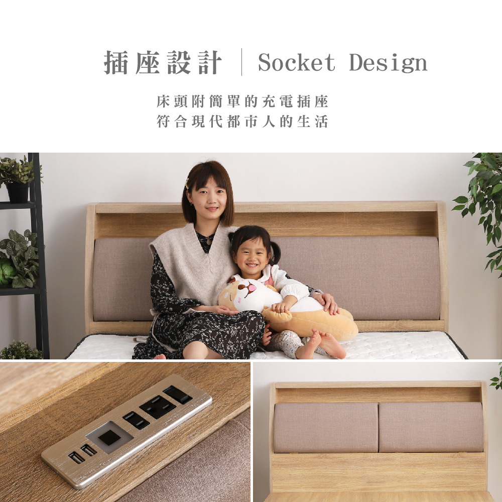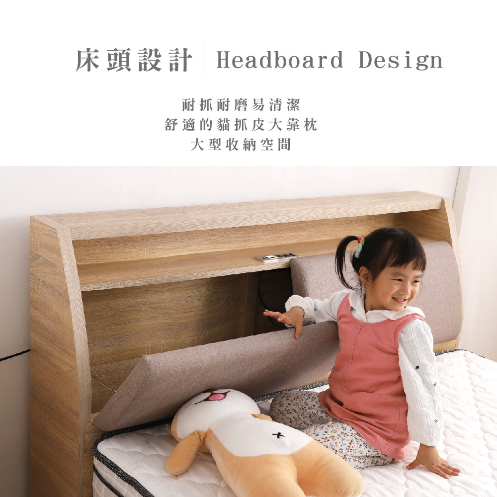 羅伯 貓抓皮收納插座房間三件組-單大3.5尺/雙人5尺/雙大6尺 床墊+床頭+木屐底