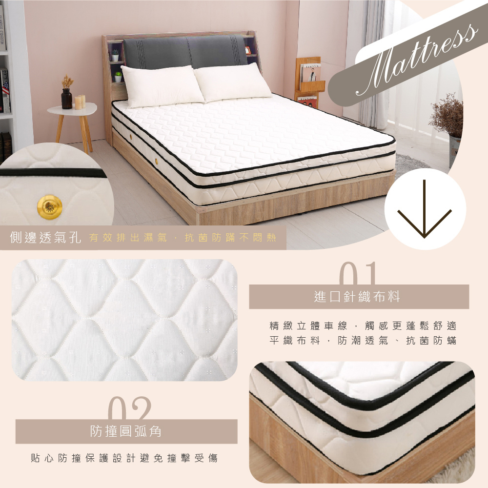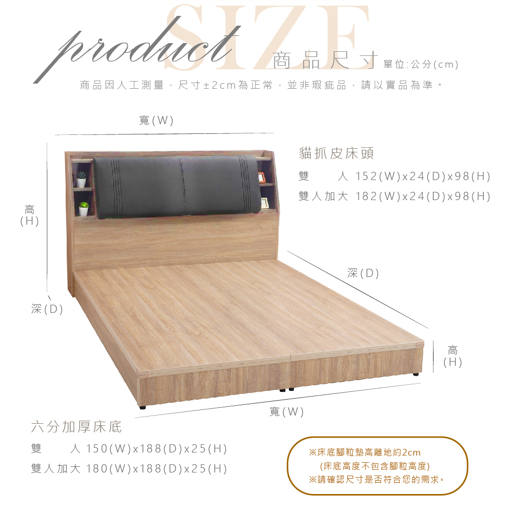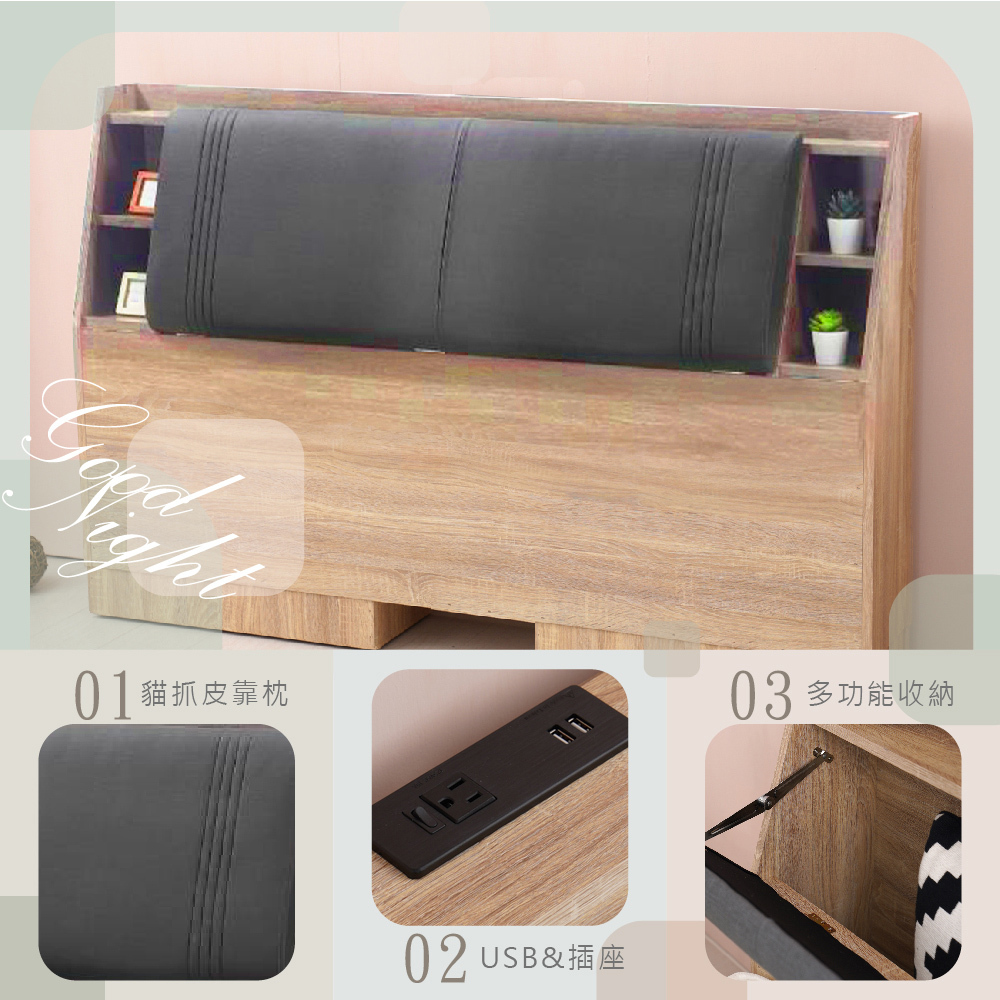 艾尼 USB插座貓抓皮房間三件組 床頭+床墊+六分床底-雙人5尺/雙大6尺