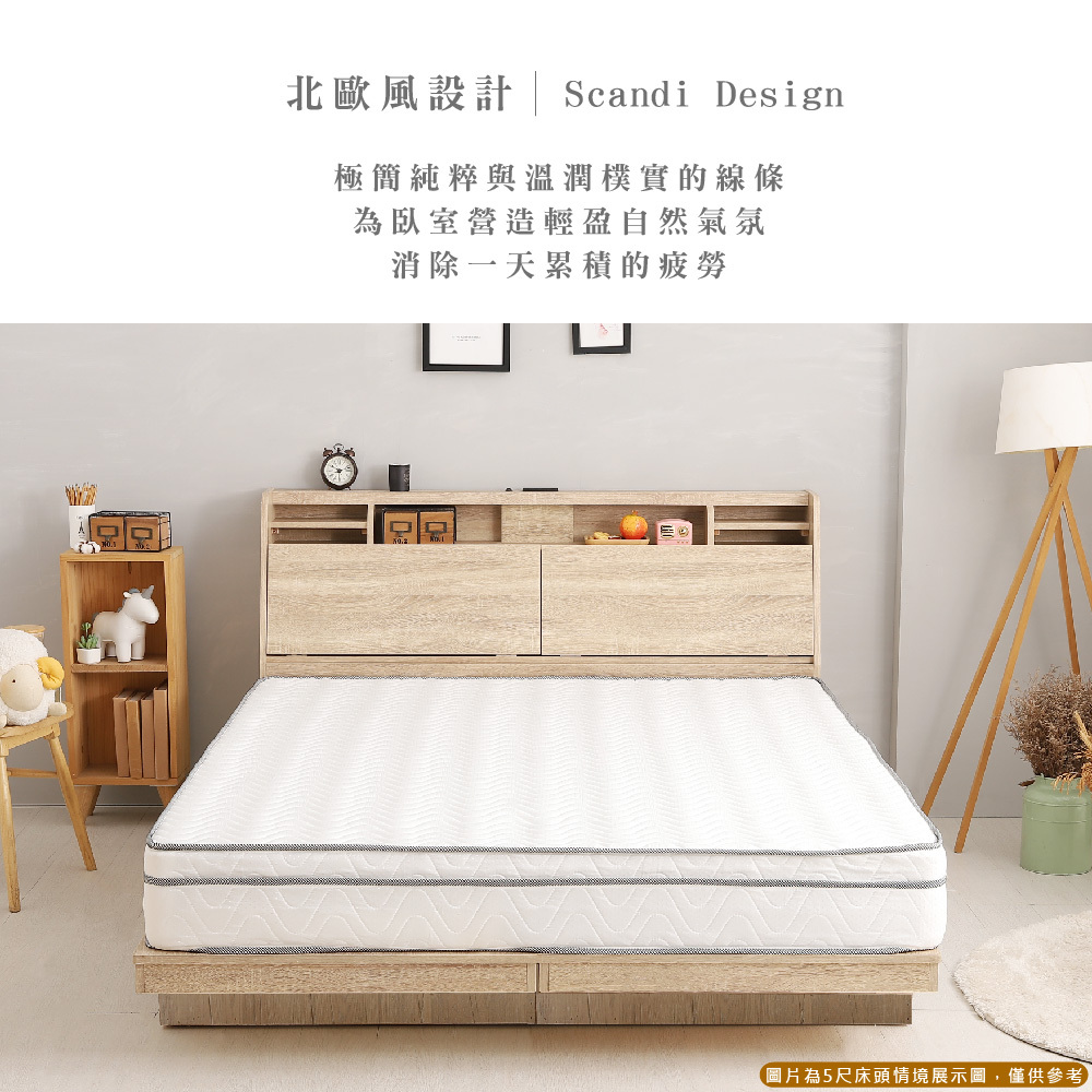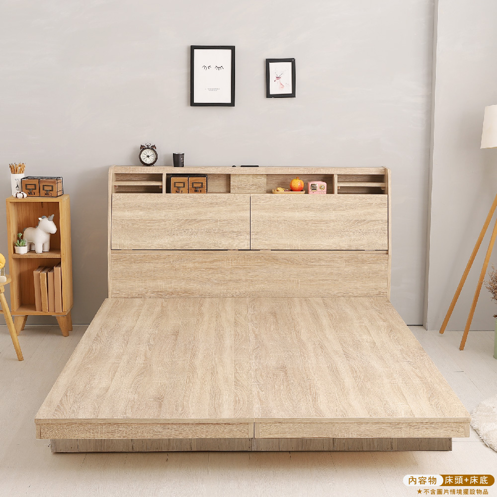 薩魯 LED燈光房間二件組-單大3.5尺/雙人5尺/雙大6尺 床頭+木屐底