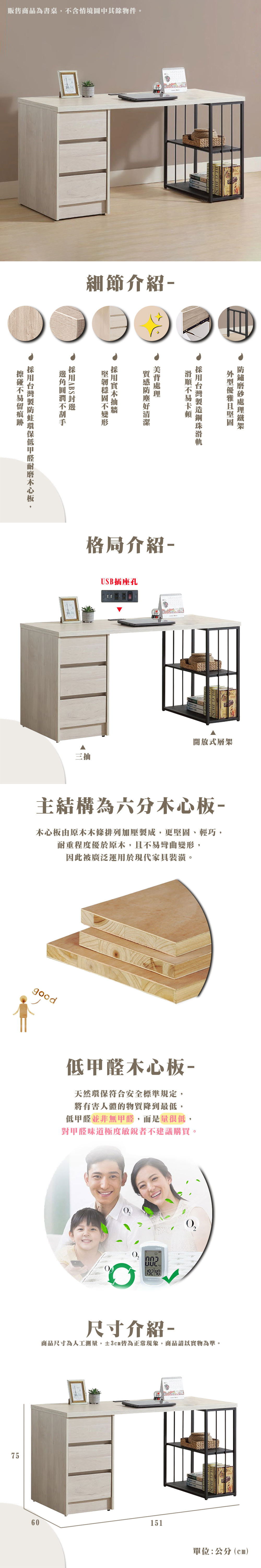 蜜琪 5尺三抽書桌
