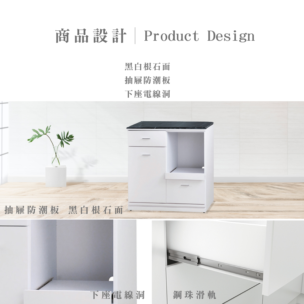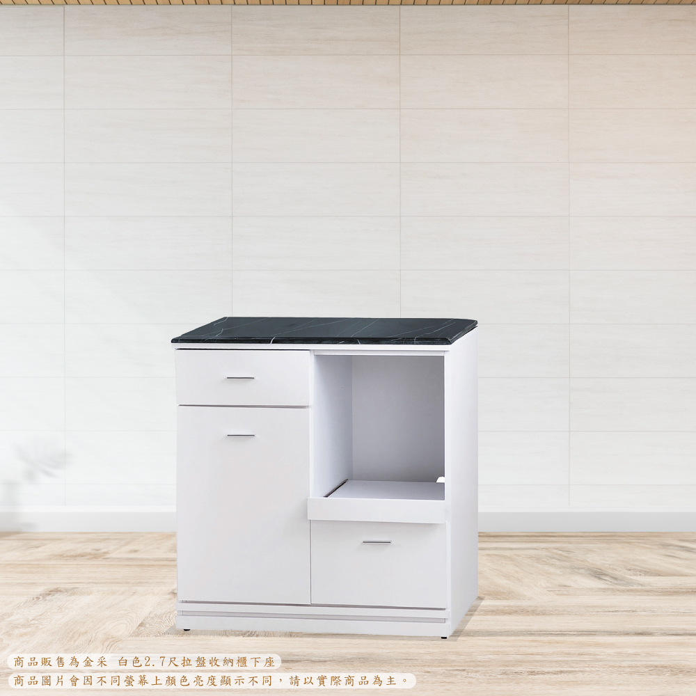 金采 白色2.7尺拉盤餐櫃下座