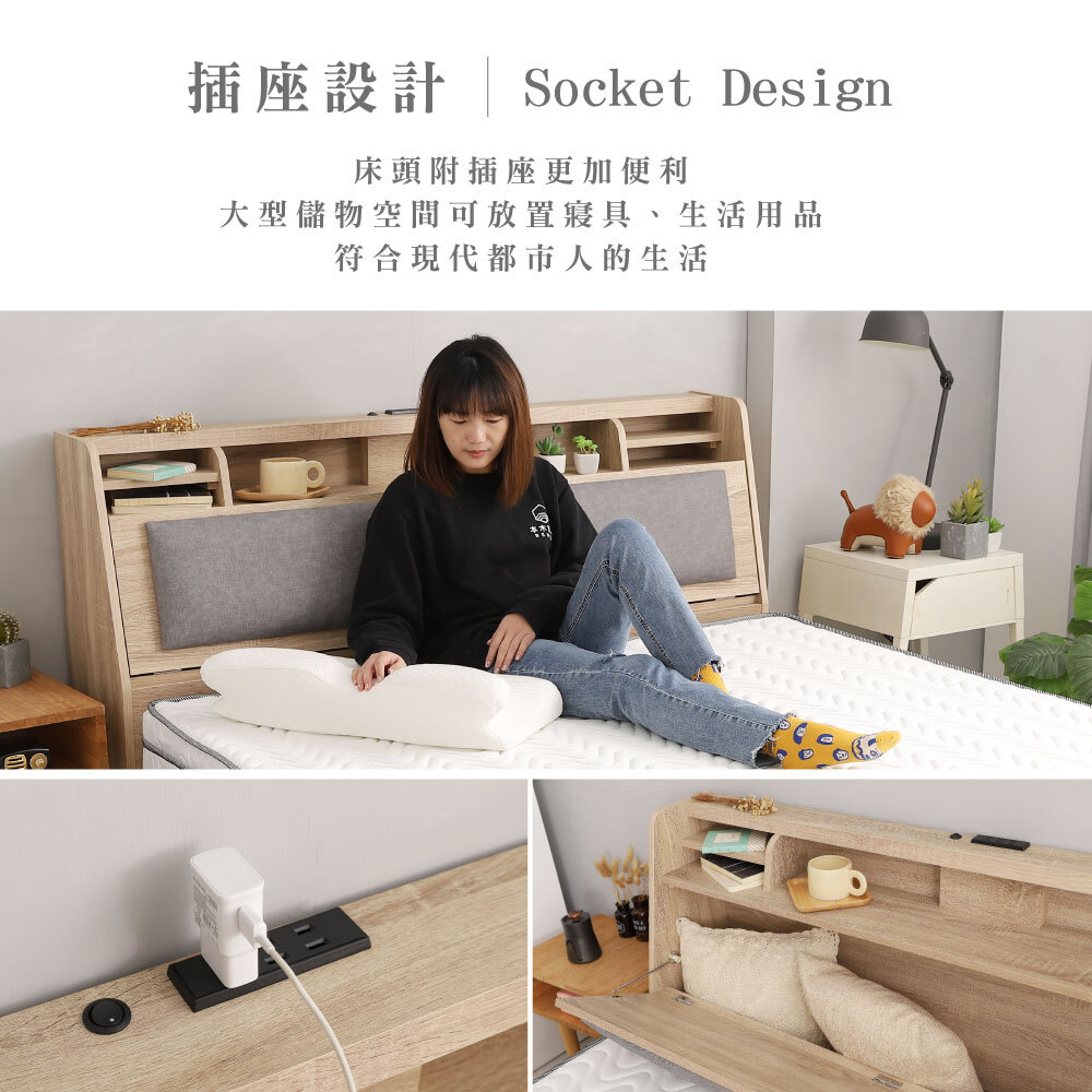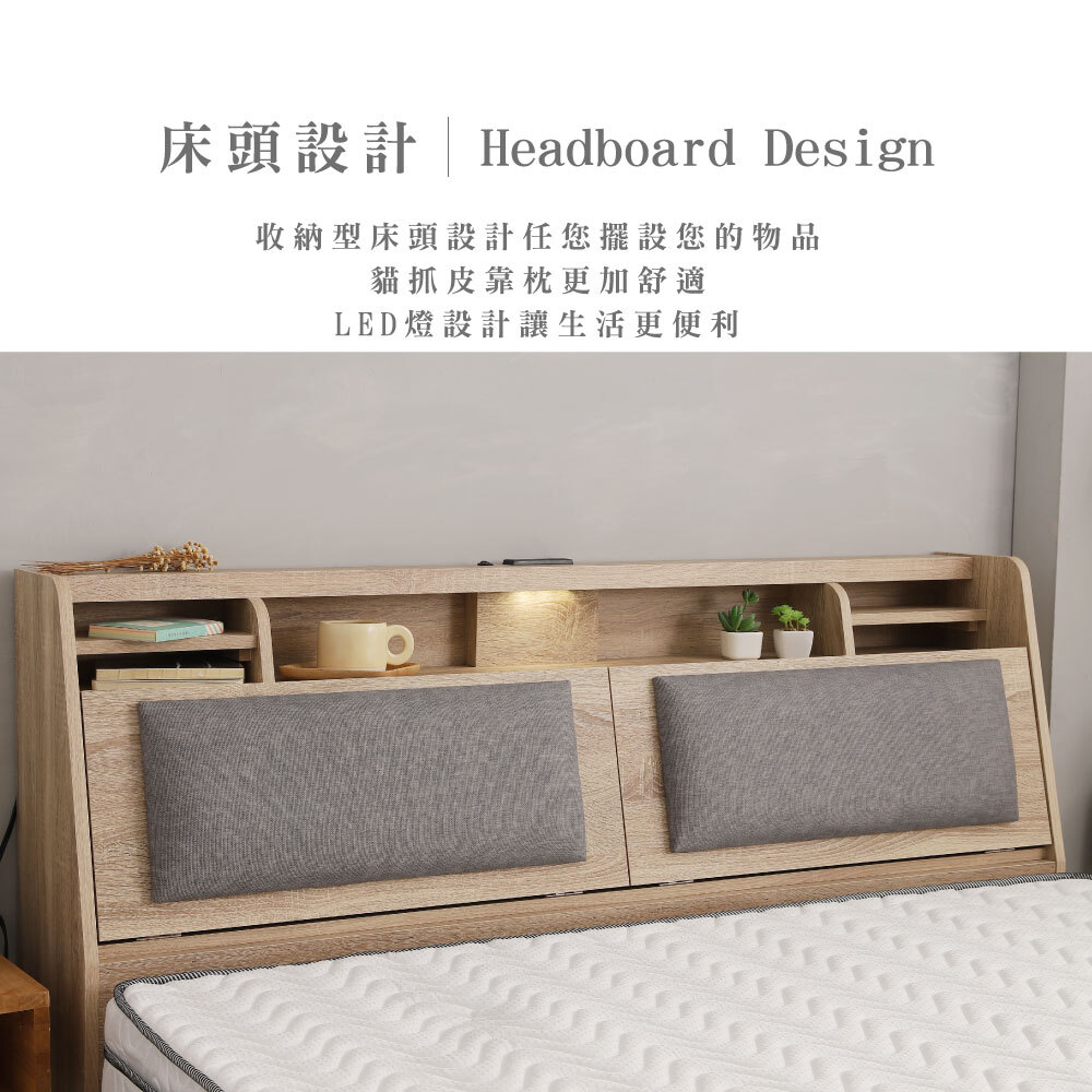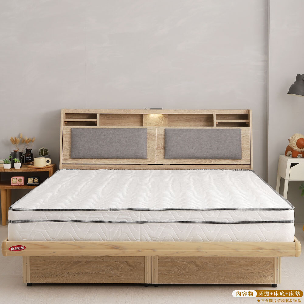 陶斯 LED燈光房間三件組-單大3.5尺/雙人5尺/雙大6尺 床墊+床頭+掀床