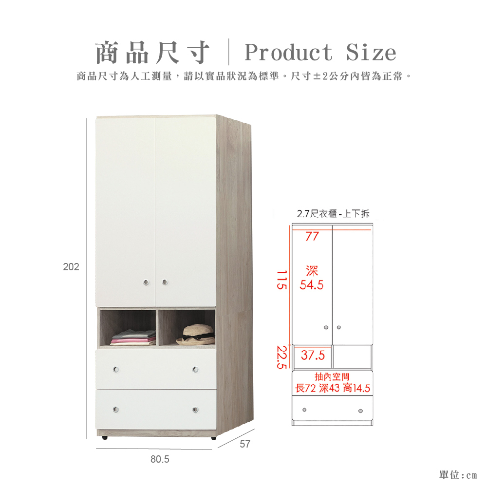 黛莉 2.7尺單吊抽屜衣櫃/1.5尺衣櫃