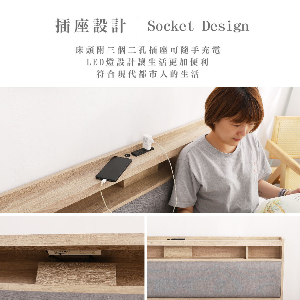 日比野 LED燈光床頭-單大3.5尺/雙人5尺/雙大6尺